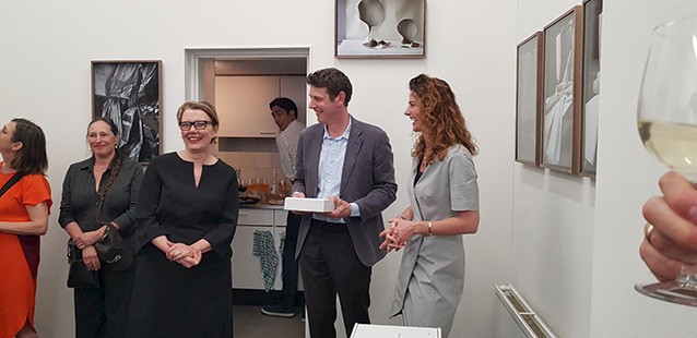 opening solo tentoonstelling Collect Editions november 2015, met felicitaties van Joke Roobaart